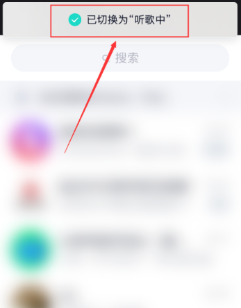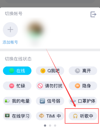 在彈窗中,找到“聽歌中”在線狀態(tài)。