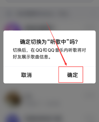 選中“聽歌中”,然后在提示框中選中“確定”選項(xiàng)。