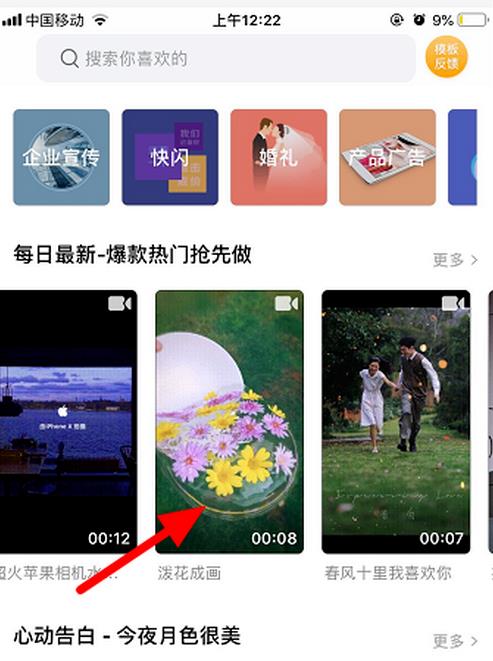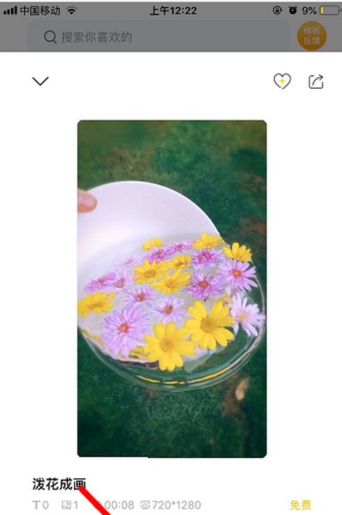 1、下載“傳影記”app,點擊“模板中心”,進入“潑花成畫”模板。