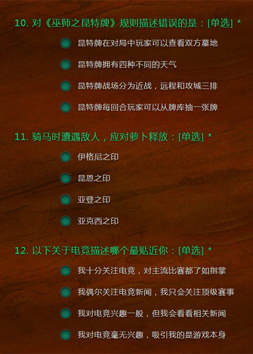調查問卷的問題非常有意思,有關于《巫師》游戲的,也有關于《昆特牌》的,甚至還有關于國服微博的,相信難不倒各位玩家。