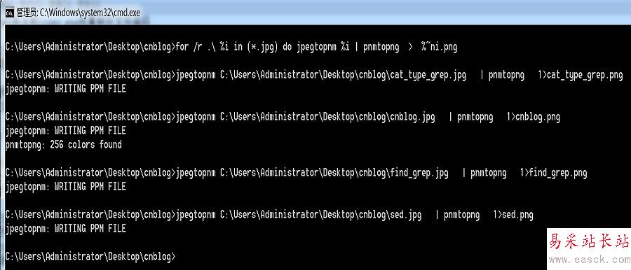 8. 批量轉化圖片:for /r ./ %i in (*.jpg) do jpegtopnm %i | pnmtopng > %~ni.png