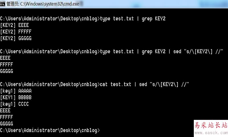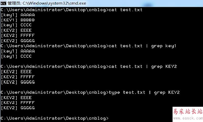 2. type/cat + grep 過濾文件內容:cat test.txt | grep KEY2 或 type test.txt | grep KEY2