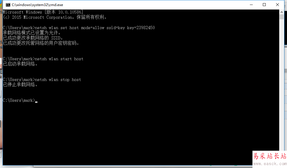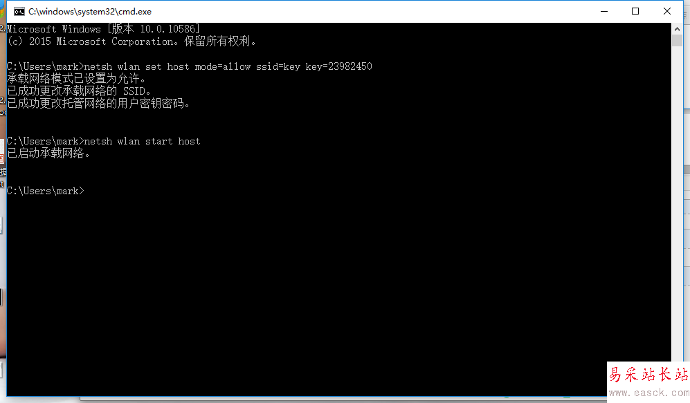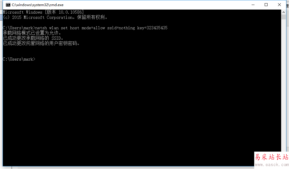 netsh wlan set host mode=allow ssid=nothing key=323435435