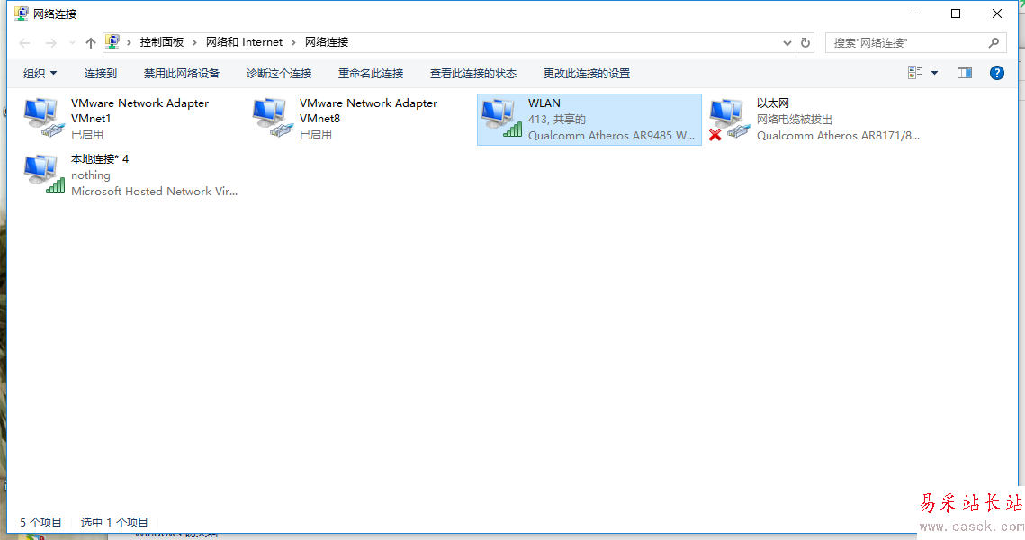選中WLAN,右鍵選中屬性(如果電腦是wifi鏈接的話)