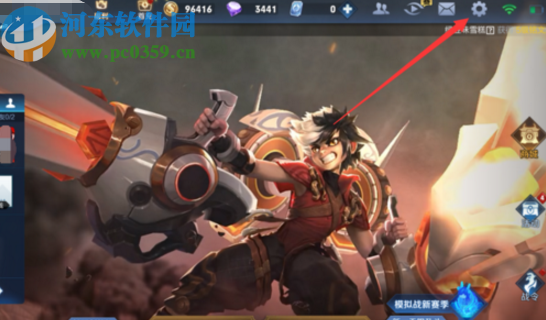 1.首先第一步我們登錄到王者榮耀游戲界面之后,在界面上方找到設置圖標點擊進去,如下圖所示。