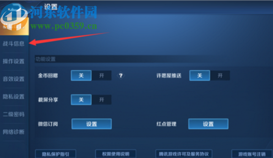 2.點擊打開設置界面之后我們在界面的左側點擊切換到戰斗信息這個功能模塊中,如下圖中所示。