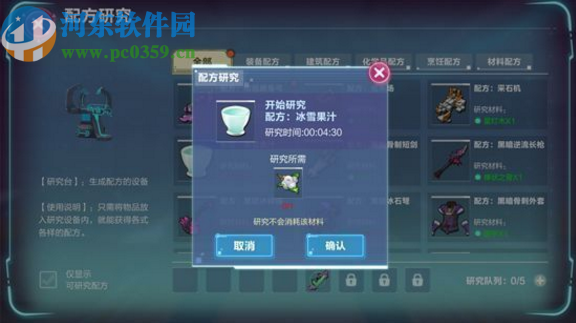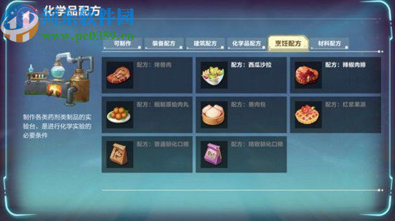 2.在游戲中有非常多的工作臺可以選擇合成,就比如烹飪工作臺、材料工作臺、建筑工作臺、裝備工作臺等,還有一個化學工作臺,可以用來加工采集到的藥材。