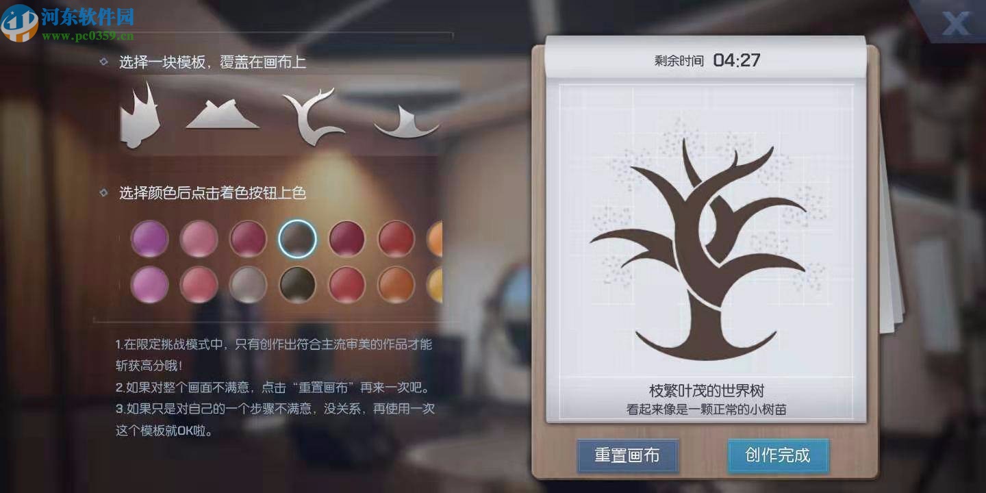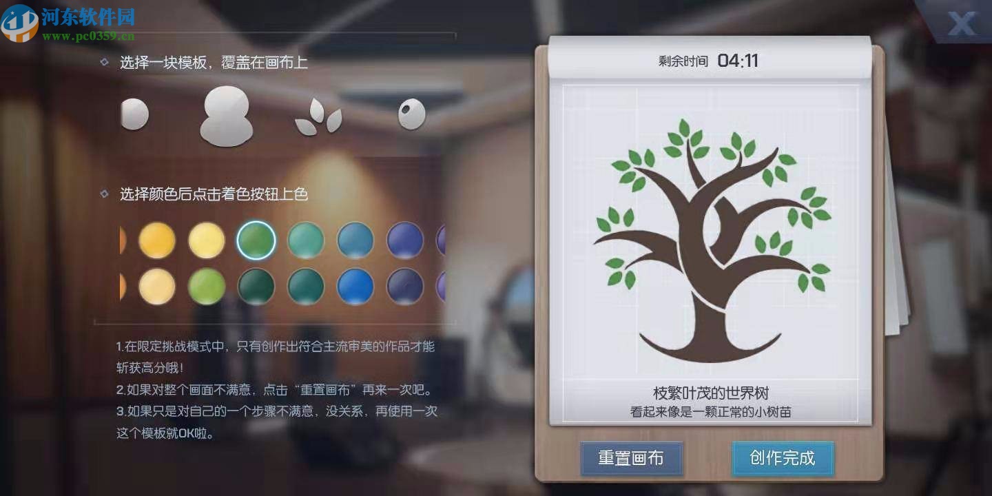 2.噴繪的主要步驟就是將畫布布置完成之后將樹枝和綠葉的位置在畫布上面規(guī)劃好,然后點(diǎn)擊界面左邊的色彩盤著色。