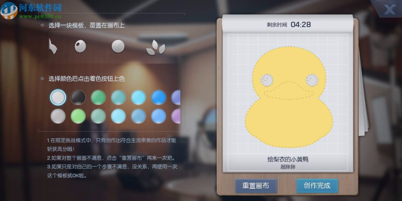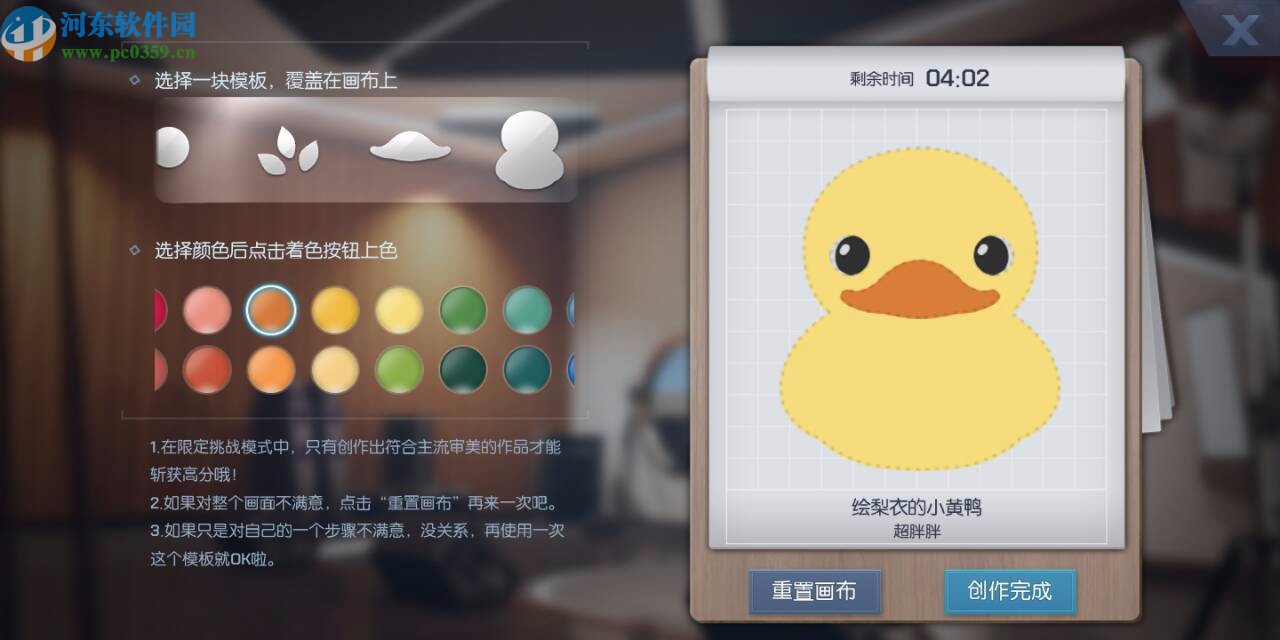 3.然后就是小黃鴨的噴繪步驟了,首先選中小黃鴨的整個身體,然后將顏色填充在畫布中,在界面左上方的模塊中可以選擇小黃鴨眼睛的位置圖案。