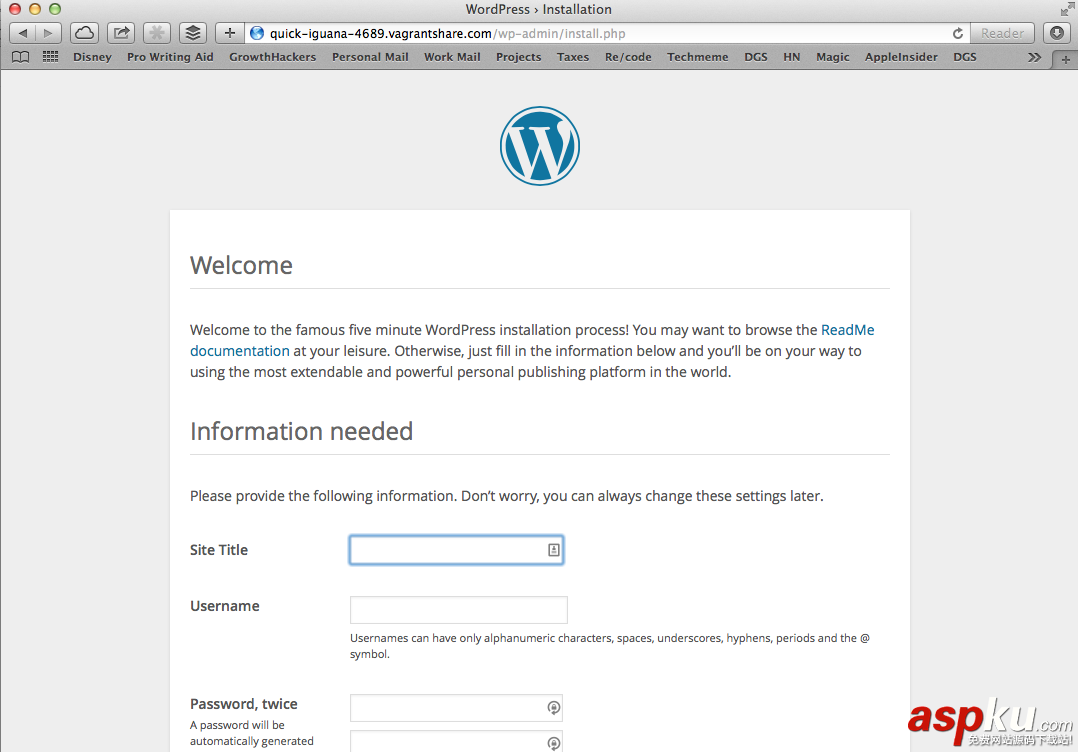 就這樣,搞定了。在Vagrant 1.5使用Vagrant Cloud賬號,你可以訪問你的WordPress應用。如下圖:
