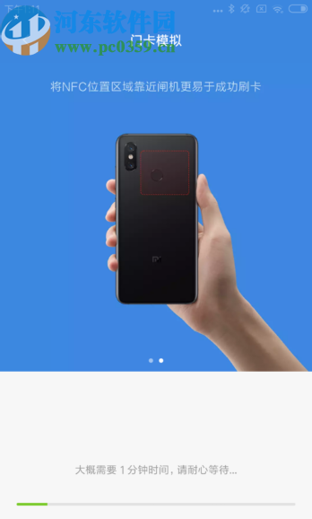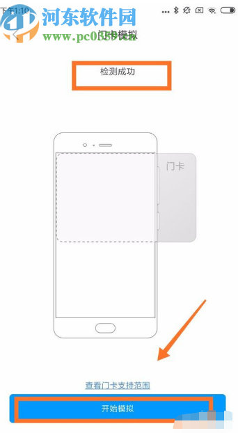 4.點擊開始模擬之后我們需要先進行一下身份驗證,驗證成功之后就可以開始模擬了,將我們的門卡靠近手機下圖所示的位置,等待模擬成功即可。