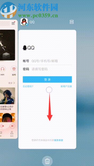 2.我們在打開應用后臺切換界面之后,滑動界面找到那個要設置為常駐后臺應用的界面,然后向下拉動。下圖中以QQ應用為例。