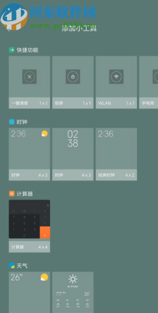 3.點擊進入到添加小工具界面之后如下圖中所示,我們在界面中可以看到有快捷功能、時鐘、天氣等小工具的選項,大家根據個人的需求選擇添加即可。
