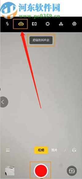 3.最后切換到拍攝視頻功能界面之后,下一步就是點擊界面上方的小相機圖標,點擊這個圖標就可以開啟超級防抖模式了。