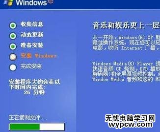 接下來(lái)就是系統(tǒng)自動(dòng)進(jìn)行了,不需要我們進(jìn)行手動(dòng)操作,整個(gè)操作系統(tǒng)安裝完成可能需要幾十分鐘,期間我們可以去做其他的事情,不必一直盯著它。至此,U盤安裝XP操作系統(tǒng)的教程就此結(jié)束了,有興趣的朋友可以自己動(dòng)手進(jìn)行操作,畢竟只有自己親自動(dòng)手才能更加牢固的掌握此項(xiàng)技術(shù)。