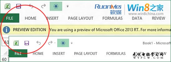 1.Office 2013 RT具有較為明顯的“Preview Edition(預(yù)覽版)”字眼,同時(shí)暗示著Office 2013將在2013年發(fā)布正式版。