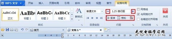 點擊它們,就可以實時地看到段落中行距的調整效果了。每單擊一次,分別增減0.25倍的行距。 與以往版本及其他同類軟件相比,調整效果的實時可視性、所見即所得的預覽效果是極具吸引效果的。