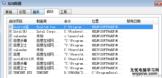 4.在系統(tǒng)配置窗口中,咱們將界面切換到啟動這一欄,然后將不需要的啟動項目全部的取消勾選,完成設(shè)置后點擊下方的確定按鈕保存,之后重啟電腦即可。