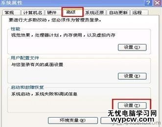 打開“系統屬性”窗口,切換到“高級”選項卡,單擊啟動和故障恢復的“設置”按鈕
