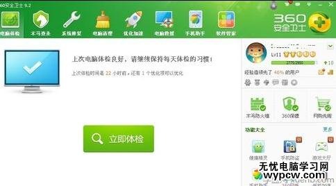 步驟二:360系統藍屏修復功能是不會自動運行的,需要你自己打開。打開方法可以是你安裝修復漏洞后提示你打開,也可以是自己打開。