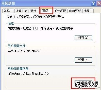 打開“系統屬性”窗口,切換到“高級”選項卡,單擊啟動和故障恢復的“設置”按鈕