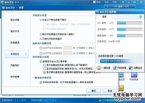 ⑶.你還可以把溫度顯示設置到桌面,隨時可以實時硬件溫度檢測