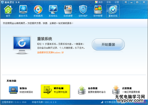 ⑴.首先下載金山衛士,打開衛士主界面中“重裝系統”標簽,