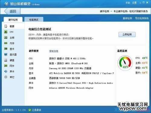 ⑵.然后切換到“硬件檢測”功能,自動幫你檢測當前計算機的硬件設備詳細信息以及當前硬件當前溫度是多少,當您的硬件溫度達到危險值,溫度數字顏色會變得越來越紅。