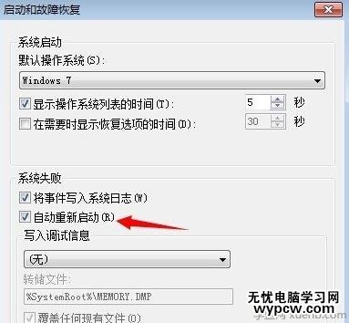 點“高級”,進入啟動和故障修復的設置選項,把自動重啟項的勾去掉,點擊確定,然后就可以了。