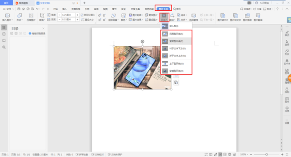 我們還可以通過【圖片工具】來完成圖片指定位置的調整,選中圖片,然后點擊Word工具欄中的【圖片工具】功能,然后在圖片工具的眾多功能當中找到【環繞】選項,然后將圖片的環繞形式改成非嵌入式的就可以了。