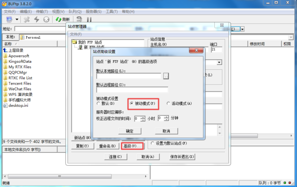 而界面當中的其余的選擇,就都按照默認的形式就可以了,不需要進行改動。如果是LINUX VPS,需要再界面當中的【高級】選項當中,改成【被動模式】,最后點擊【連接】按鈕,就能夠看到FTP的連接狀態了。