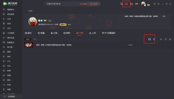 1進入騰訊視頻,將需要整理的視頻下載,在下載頁面的右側位置,點擊打開文件夾找到下載好的視頻