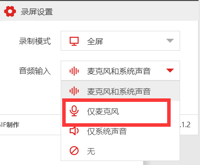 2、選擇音頻輸入中的僅麥克風