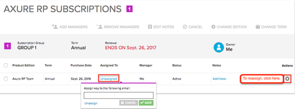 其實,對于Axure RP的分發訂閱,其余Axure客戶門戶中的【分配】一樣簡單。登錄并找到頁面中的【Axure RP Subscriptions】部分,然后點擊訂閱旁邊的【未分配】選項,最后輸入將要使用它的個人電子郵件地址就可以了。這樣訂閱就會與個人的Axure賬戶進行關聯了。