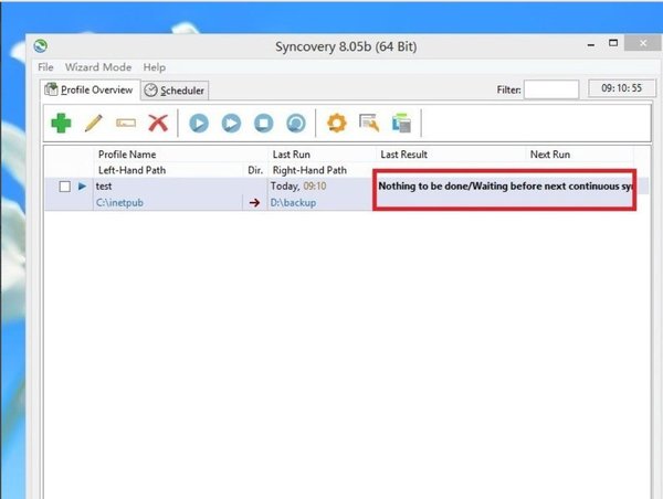 然后,這個Sheduler就可以開始進行備份工作了,備份完成以后,狀態(tài)信息就會提示等待下一次的備份了,而出現(xiàn)等待下一次備份的信息是因為我們勾選了【continues sync】的原因。