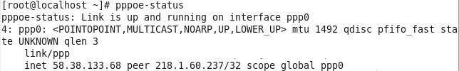 [root@localhost ~]# pppoe-status 設(shè)置完成后我們看看adsl狀態(tài)