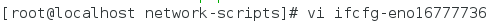 3、找到網卡的配置文件(centos7修改了網卡的命名規則,不再是我們熟悉的eth0了,而是ifcfg-eno+一串數字),例如我的就是ifcfg-eno16777736