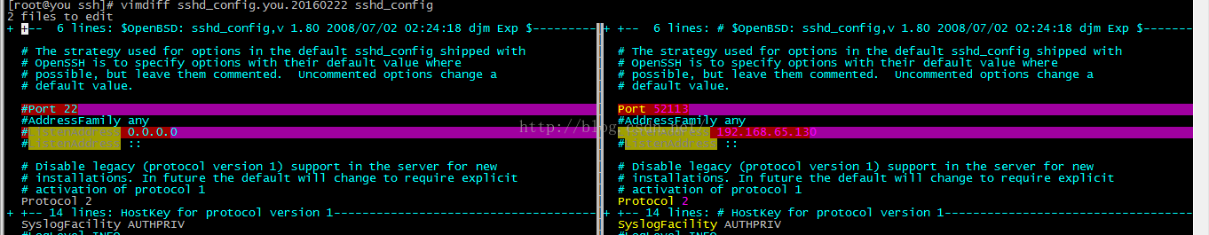 2.利用vimdiff命令(更為強大且可以高亮顯示):