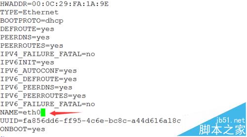 2、首先,先編輯網卡的配置文件 vi /etc/sysconfig/network-scripts/ifcfg-eno16777736 將里面的NAME項修改為eth0