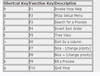 同時,htop也支持單一命令字符的用法,如按【q】鍵可以離開htop