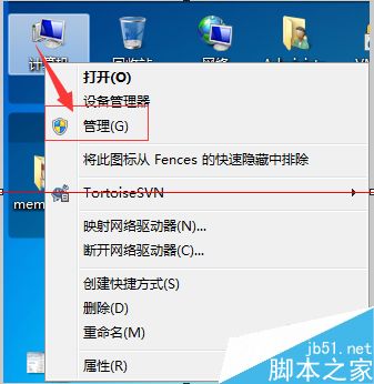 1)在桌面“計算”左擊選擇‘管理’,打開'計算機管理'窗口