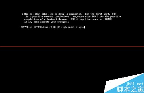 5、然后按回車退回GRUB 界面,按B進入單用戶模式