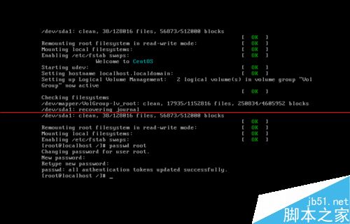 6、進入單用戶界面輸入B 界面,passwd 用戶名 然后輸入要修改的密碼,提示所有認證口令更新成功,這樣密碼就修改成功了。密碼修改完成后,輸入init 3 進入多用戶模式。