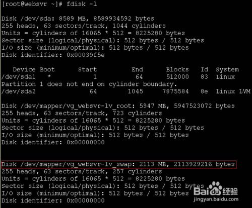 圖中/dev/mapper/vg_"hostname"-lv_swap就是swap分區,為2G。swap分區亦可用free命令查看到。