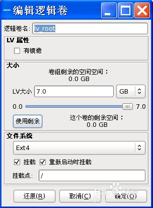2、點擊“使用剩余”,可以看到5.54G增大至7.0G了。然后“確定”。