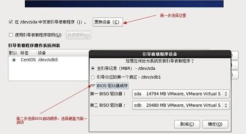 10、接著是最重要的步驟。引導(dǎo)程序的選擇一定要選擇硬盤為第一引導(dǎo),不然默認(rèn)是優(yōu)盤啟動(裝完系統(tǒng)必須要插著優(yōu)盤才能啟動),點開更改設(shè)備,在下拉“BIOS驅(qū)動順序”里的第一BIOS驅(qū)動器處選擇硬盤位第一啟動。