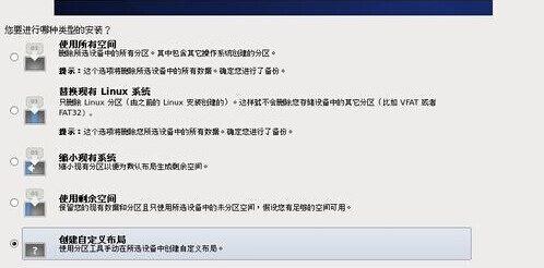 8、選擇安裝類型(建議選擇自定義安裝)接著分區(qū)。