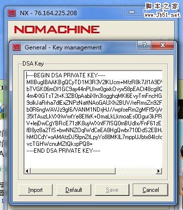 3..安裝FreeNX后打開(kāi),輸入root,密碼及vps的IP,并導(dǎo)入剛才下載回來(lái)的client.id_dsa.key,具體請(qǐng)看圖: