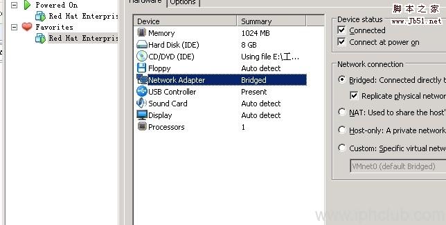 如果無法上網,鼠標右鍵選擇虛擬機的setting配置項,Network Adapter選擇Bridged,路由就會為其分配IP地址,其他上網方式可以自己去網上搜搜。
