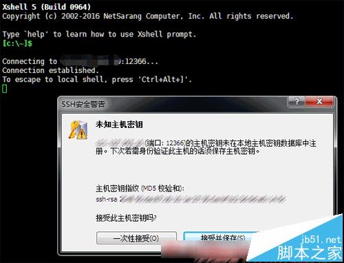 8、現在重復上面第4步里面的修改SSH軟件端口的步驟,改為12366端口,連接VPS。彈出提示中選擇“接受并保存”,以后再連接VPS就不會有這個提示了。